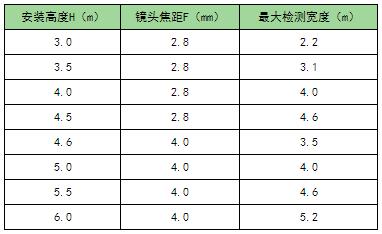 1) 根據(jù)現(xiàn)場安裝高度進(jìn)行鏡頭焦距選型,3.0-4.5米需選擇2.8mm型號,4.5-6.0米需選擇4.0mm型號。