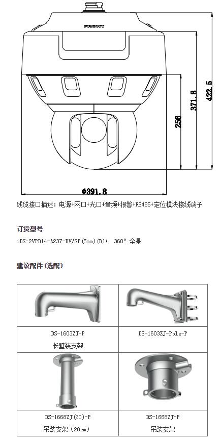 星光級360°全景一體式網(wǎng)絡(luò)高清紅外智能球機(jī)(iDS-2VPD14-A237-DV/SP(5mm)(B))